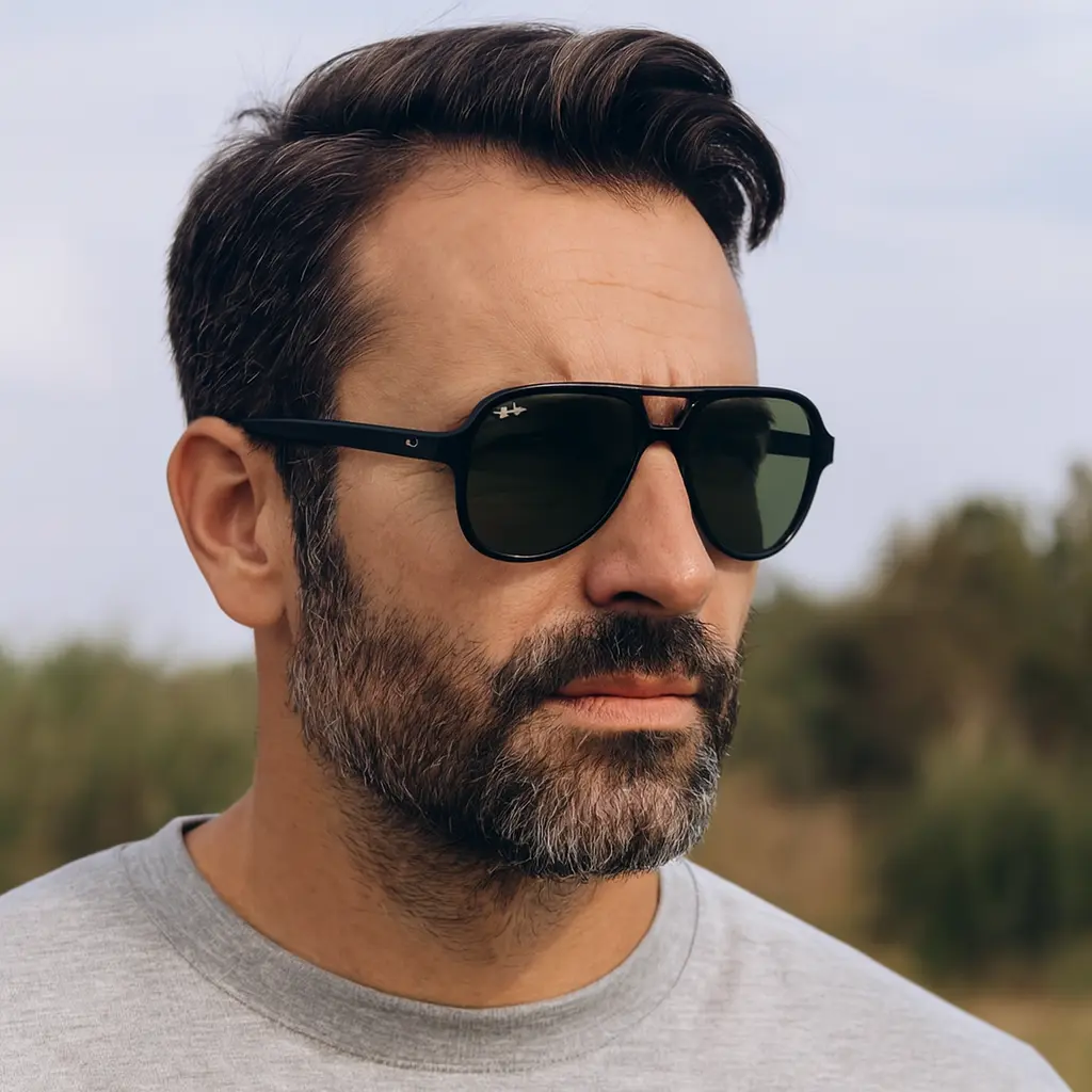 Son lentes de tamaño mediano-grande, ideales para quienes buscan buena cobertura y un aviador con presencia.